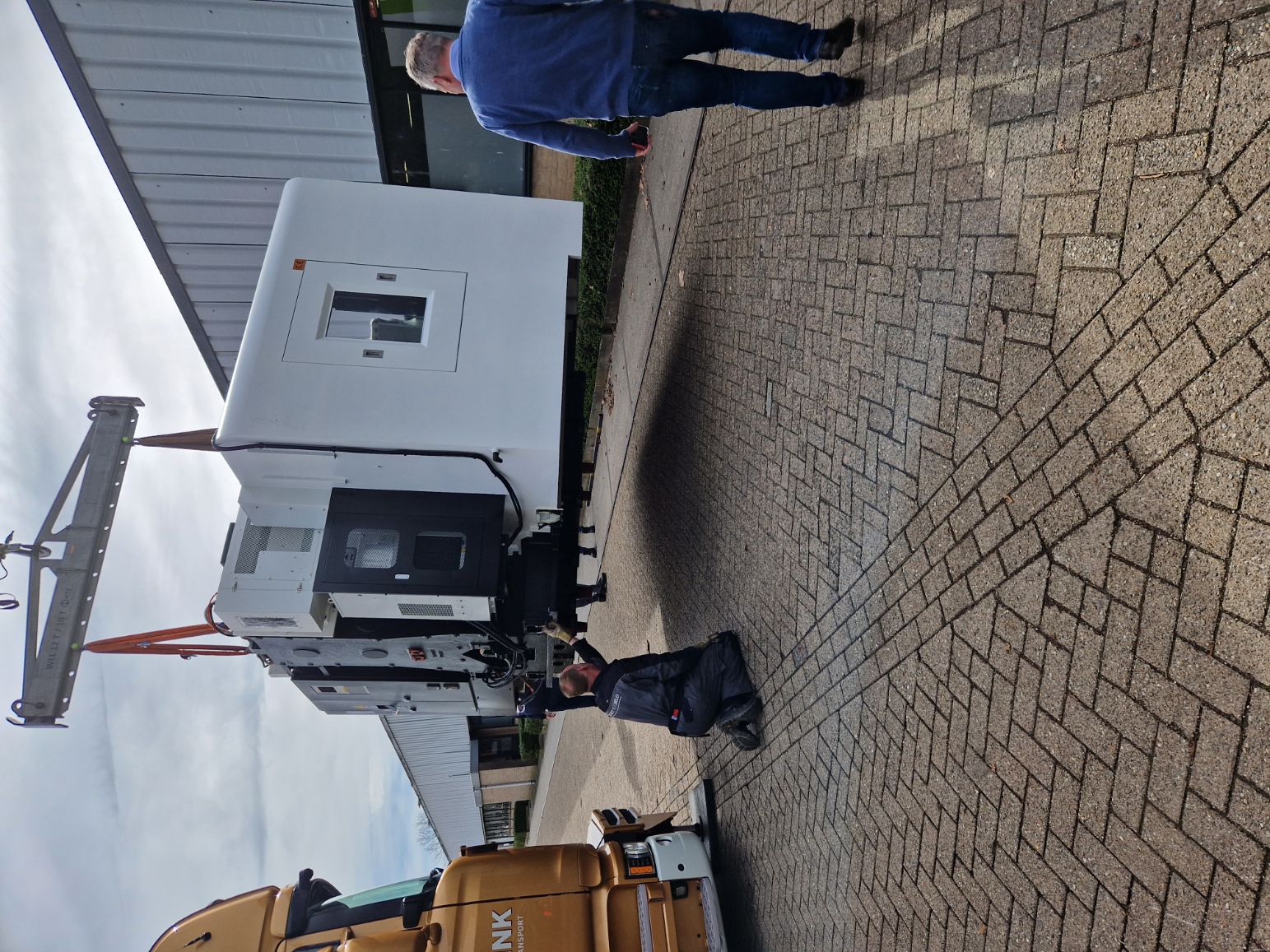 3-assige freesmachine. Met veel passen en meten kon de freesmachine naar binnen, einde van de dag stond de machine op zijn plaats.