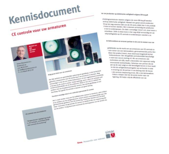 Gehele verlichtingsarmaturen moeten volgens de norm EN 60598 worden gecontroleerd op elektrische veiligheid. Hoewel een groot aantal producten buiten de EU op het oog voorzien lijkt van de CE-norm, blijkt hier in de praktijk gefraudeerd mee te kunnen worden. Het is daarom verstandig om producten aan een extra test te onderwerpen. Zo vlakt u onnodige risico’s uit, maar waan u zelf niet onaantastbaar. Zelfs na deze tests is het nog altijd verstandig om uw producten steekproefsgewijs op CE controle te onderwerpen voordat u ze verkoopt.